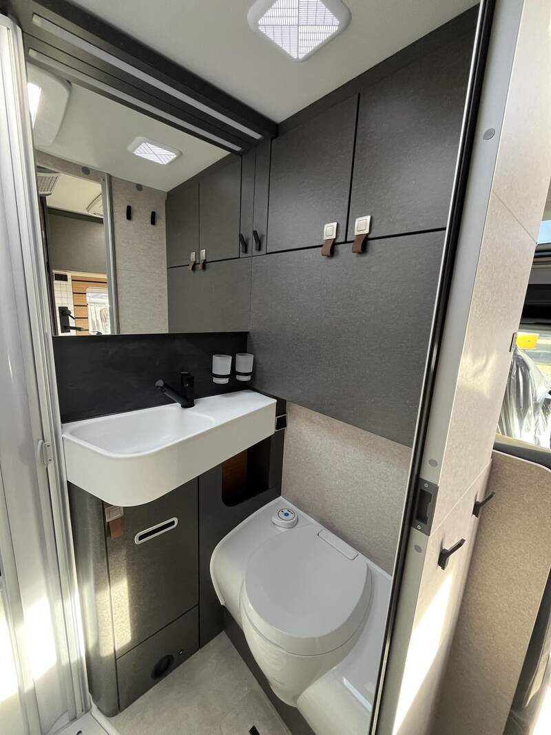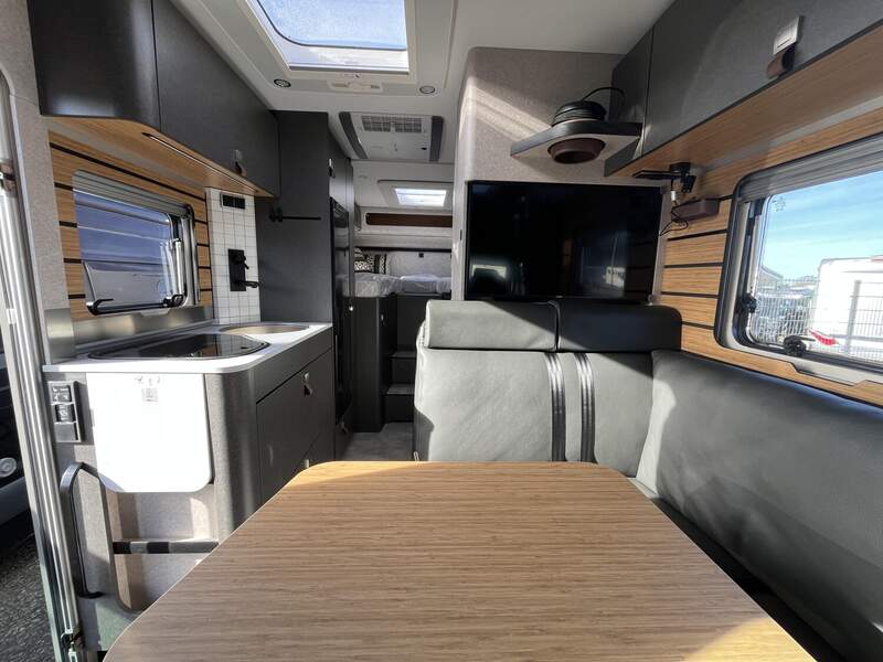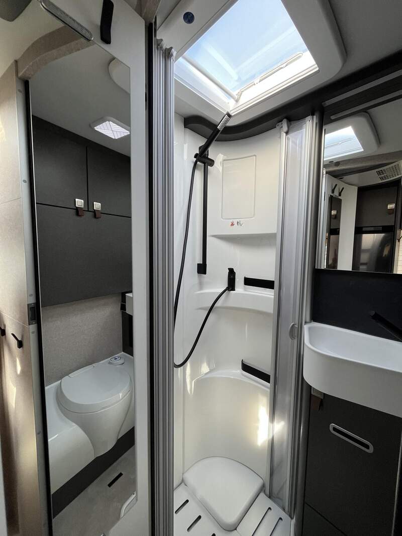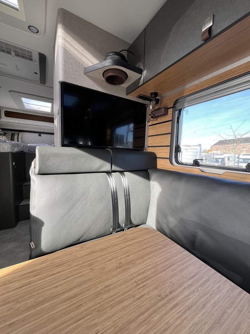 Wohnkomfort-Paket (Schlafsystem mit Tellerfederrost für Heckbett(en), Spannbettlaken nach Maß für Heckbetten individuell an Matratzen angepasst, Filzverkleidung in Heckgarage, Einlegeboden in der Dusche für ebenen Laufboden, 4 Kissen mit Bezug, Ambient-Light-System: Mehr-Ebenen Lichtsystem mit dynamischer und individueller Steuerung der Beleuchtung (inkl. Lichttemperatur) sowie stimmungsvoller Sockelbeleuchtung, Lichtpaket (Multifunktionale Pendelleuchte sowie eine Ambiente-Leseleuchte für die Multifunktionswände), 3 x 230 V / 1 x 12 V Zusatzsteckdosen)