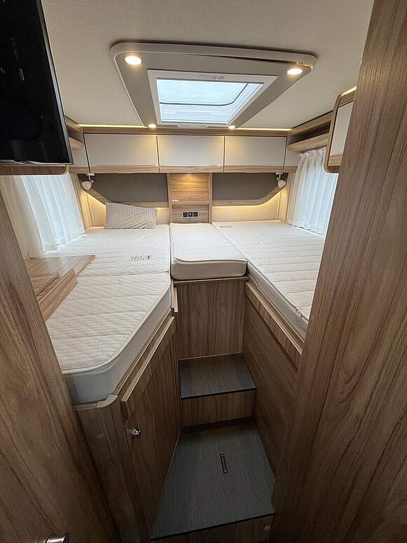 Zusatzpolster zwischen den Längseinzelbetten mit Aufstiegsleiter