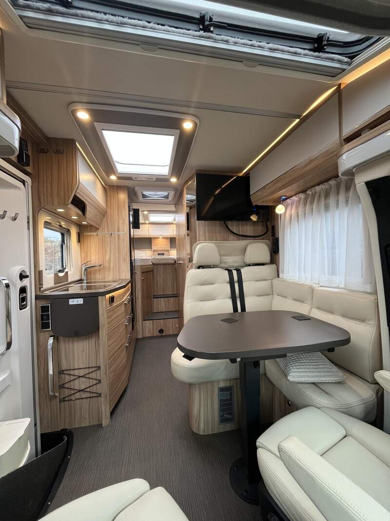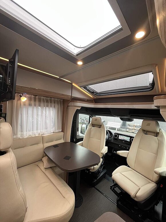 Bettenbau für Komfort L-Sitzgruppe inkl. Zusatzpolster und absenkbarem Tisch unter Einbeziehung des Fahrersitzes