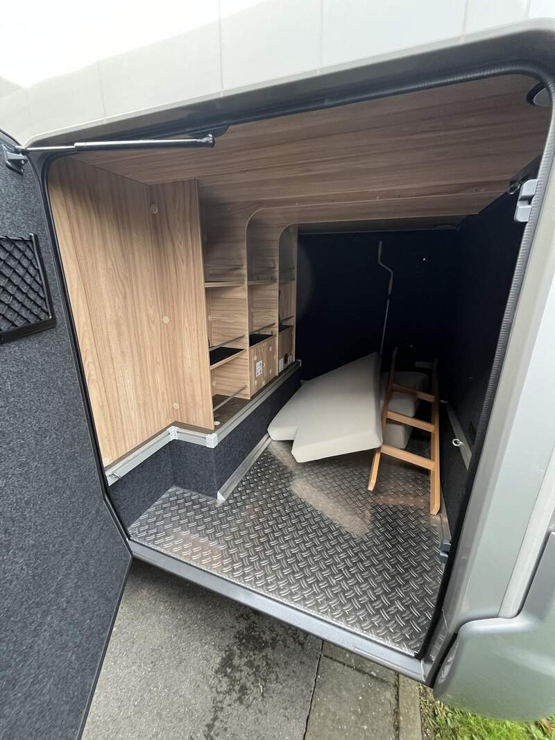 Riffelblechboden und Filzverkleidung in Heckgarage