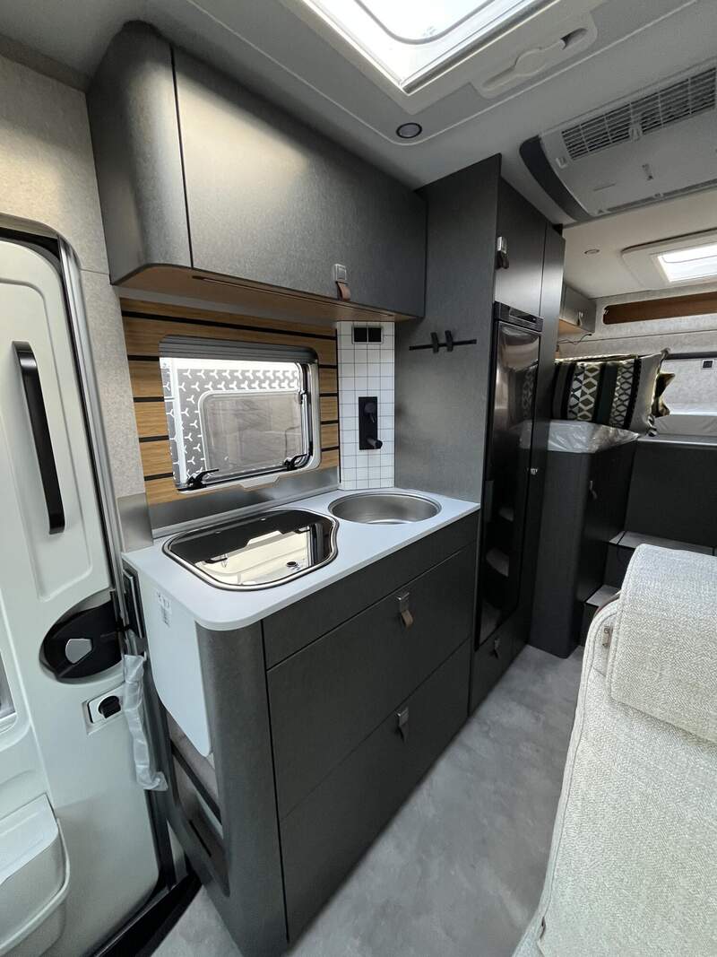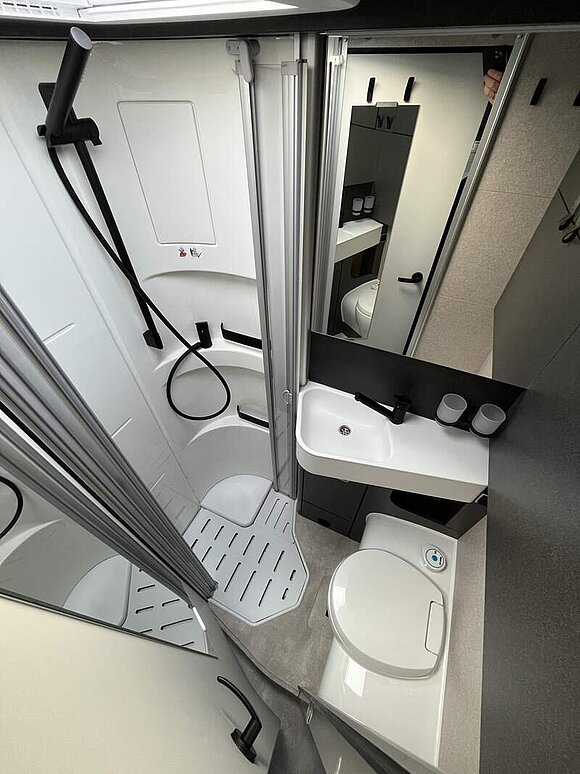 Wohnkomfort-Paket (Schlafkomfortsystem mit Tellerfederrost für Heckbett(en), Spannbettlaken nach Maß für Heckbetten individuell an Matratzen angepasst, Filzverkleidung in Heckgarage, Einlegeboden in der Dusche für ebenen Laufboden, 4 Kissen mit Bezug, Ambient-Light-System: Mehr-Ebenen Lichtsystem mit dynamischer und individueller Steuerung der Beleuchtung (inkl. Lichttemperatur) sowie stimmungsvoller Sockelbeleuchtung, Lichtpaket (Multifunktionale Pendelleuchte sowie eine Ambiente-Leseleuchte für die Multifunktionswände), 3 x 230 V / 1 x 12 V Zusatzsteckdosen)