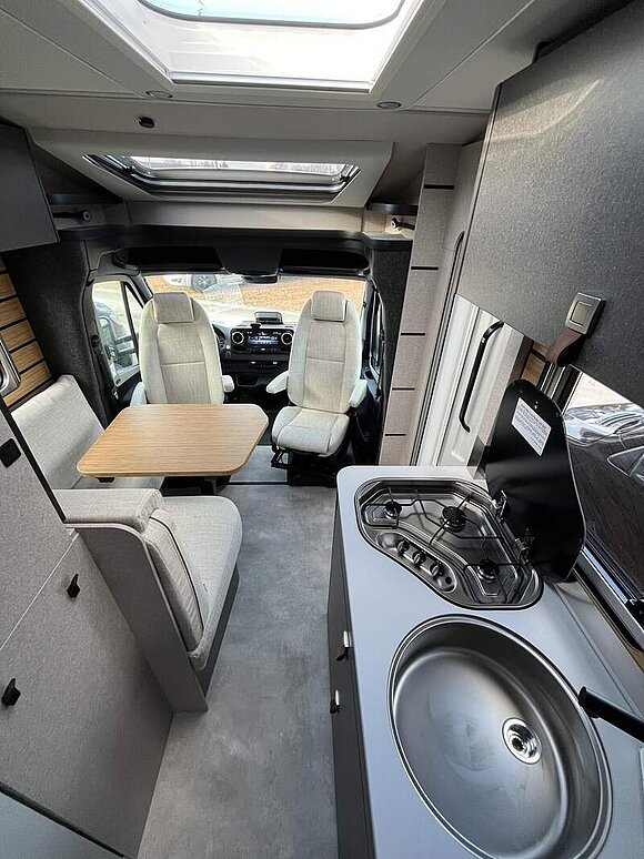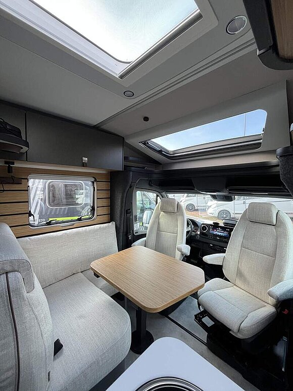 Bettenbau für Komfort L-Sitzgruppe inkl. Zusatzpolster und absenkbarem Tisch unter Einbeziehung des Fahrersitzes