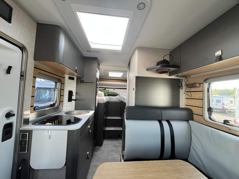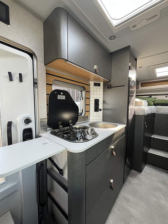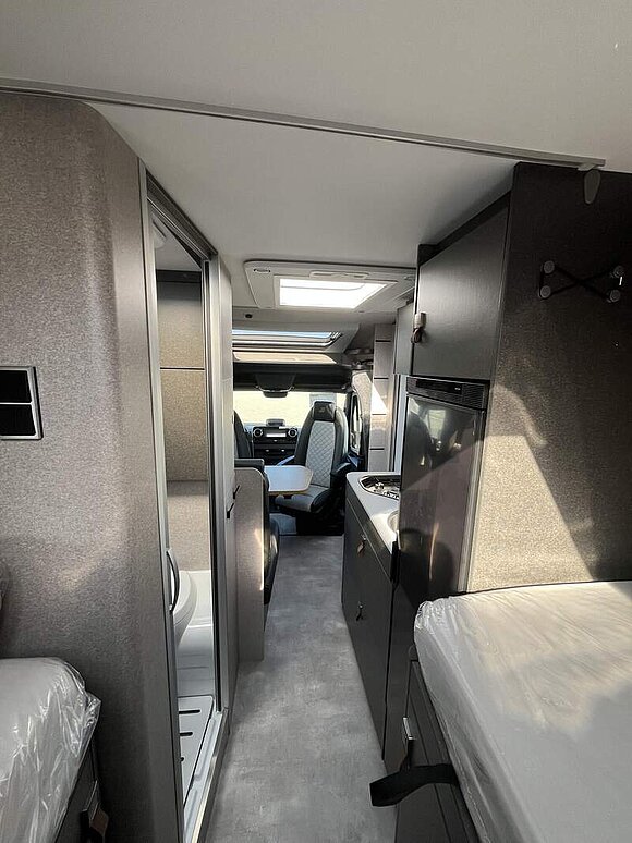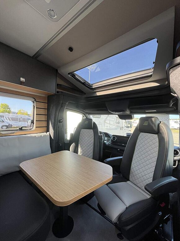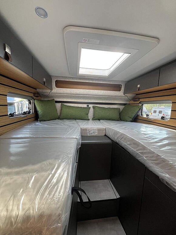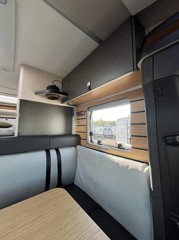 Bettenbau für Komfort L-Sitzgruppe inkl. Zusatzpolster und absenkbarem Tisch unter Einbeziehung des Fahrersitzes
