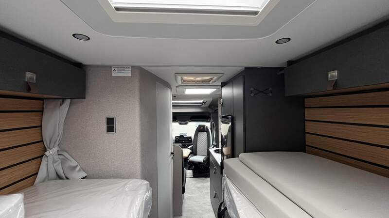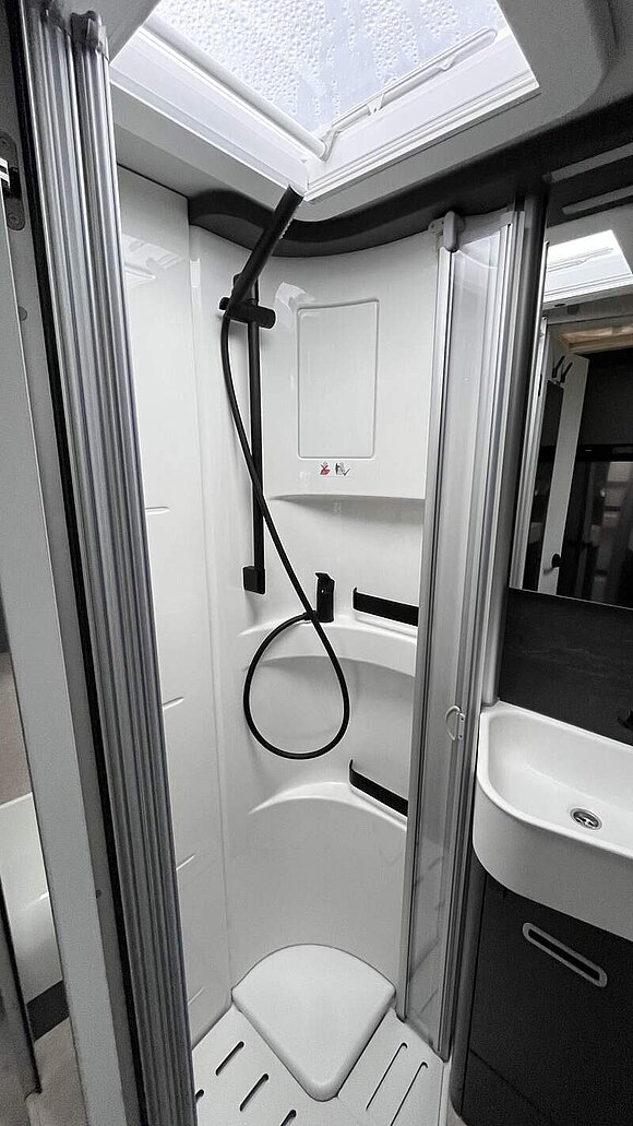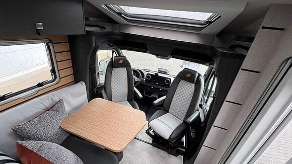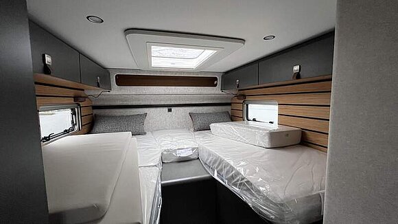Werkzeug-Set (Klappspaten, Axt) im Heckstauraum Komfort L-Sitzgruppe mit Loungepolstern, längs-/quer verschiebbarem Tisch und 2 integrierten 3-Punkt-Gurten Bettenbau für Komfort L-Sitzgruppe inkl. Zusatzpolster und absenkbarem Tisch unter Einbeziehung des Fahrersitzes Schlafsystem mit Tellerfederrost für Heckbett(en)Spannbettlaken nach Maß für Heckbetten individuell an Matratzen angepasst Zusatzpolster zwischen den Längseinzelbetten inkl. integrierter Komfortaufstieg 4 Kissen mit Bezug Einlegeboden in der Dusche für ebenen Laufboden Zweite Toilettenkassette inkl. Halterung in Außenstauraum