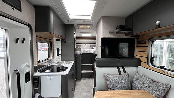 Ambient-Light-System: Mehr-Ebenen Lichtsystem mit dynamischer und individueller Steuerung der Beleuchtung (inkl. Lichttemperatur) sowie stimmungsvoller Sockelbeleuchtung Lichtpaket (Multifunktionale Pendelleuchte sowie eine Ambiente-Leseleuchte für die Multifunktionswände) 1.800 W Elektroheizstab (für 6 kW Diesel-Warmluftheizung) HYMER-Smart-Battery-System 2.0 - Zusätzlich 3 x 80 Ah LFP (Gesamtleistung 320 Ah) 5G-WLAN-Router mit Außenantenne und Dual-SIM-Slot (SIM-Karte nicht inbegriffen) Solaranlage 2 x 95 Watt mit Solarladeregler (MPPT) undAnzeige Wechselrichter 12 V auf 230 V, 1800 Watt mit Netzvorrangschaltung 3 x 230 V / 1 x 12 V Zusatzsteckdosen