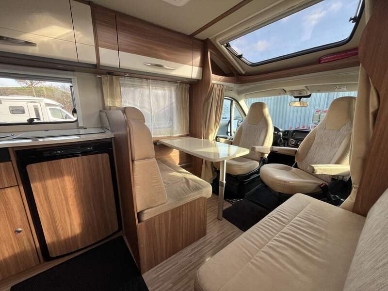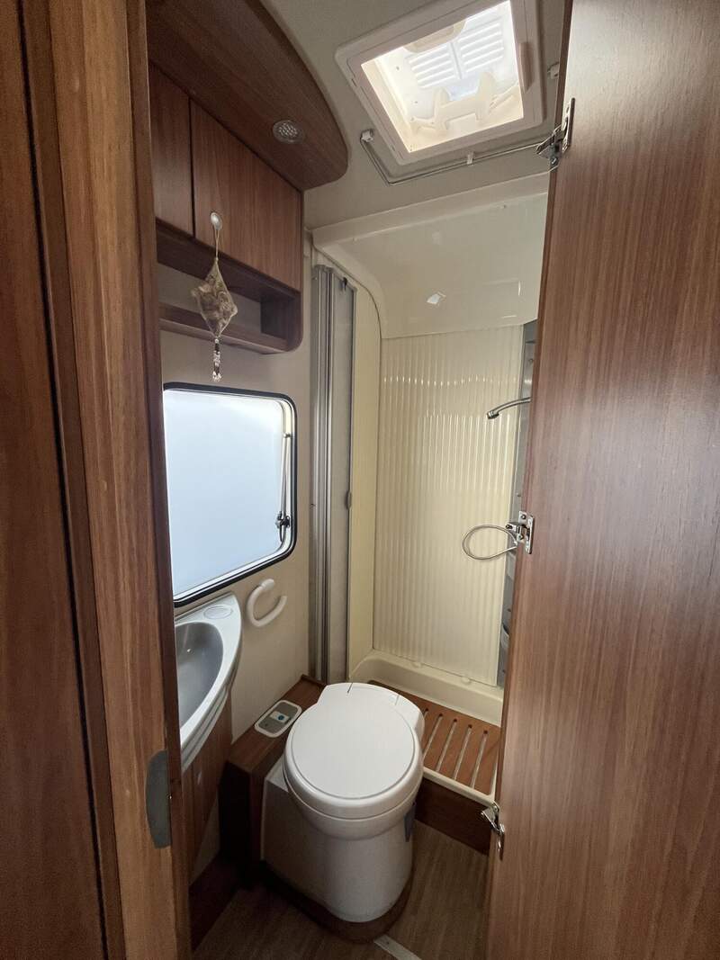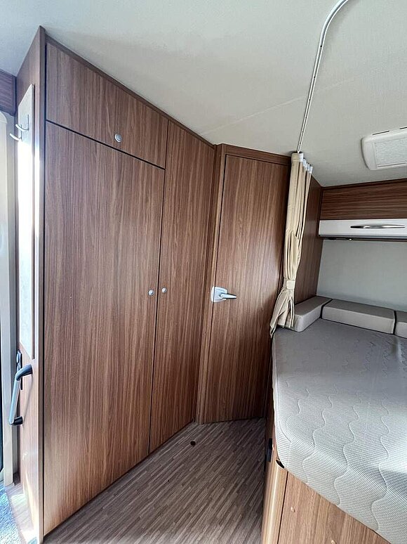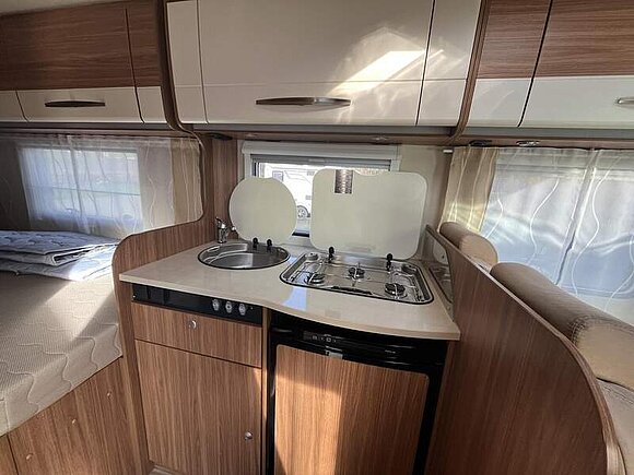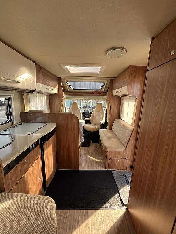 Basic-Paket (Panoramadachlüfter, Duschraumverkleidung, Mini-HeKi, Garderobe, Holzlattenrost in der Dusche, Captain-Chair inkl. 2 Armlehnen und Wohnraumbezüge, LED Wohnraumleuchte, zusätzl. Steckdose in der Küche, Kleiderstange in der Nasszelle)