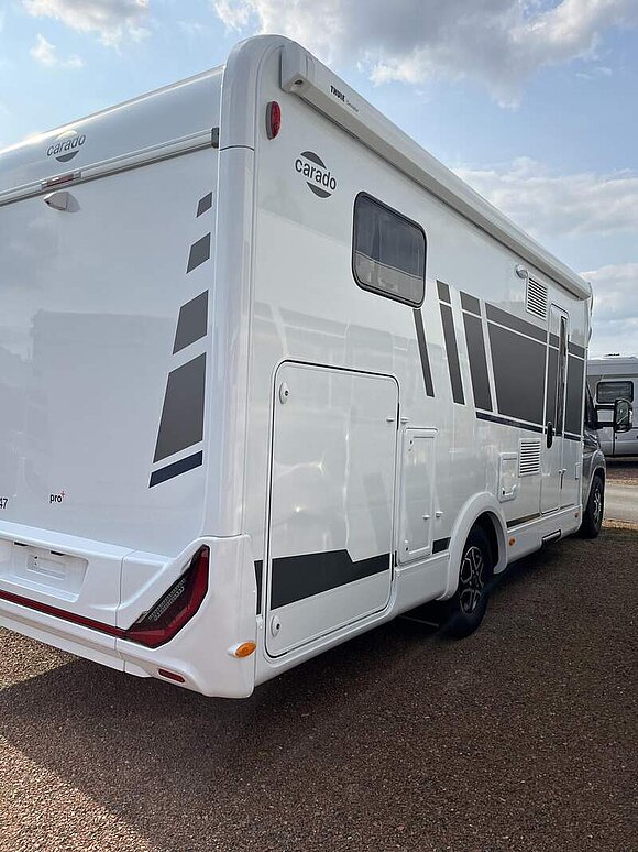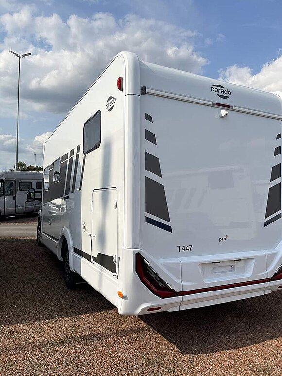 pro+ Paket T447 & T448 & T457 (Optik Paket 1 | Stoßfänger lackiert, Optik Paket 2 | Alufelgen, Chassisfarbe Artense Grau Metallic, Basic Paket, Faltverdunkelung Fahrerhaus, Fenster in Fronthaube, Großer Kühlschrank 156 l mit separatem Frosterfach 29 l, Abwassertank isoliert, Markise 4,5 m, TV Paket (22" Smart-TV & Halter | Sat-Antenne Flatsat Classic 65), Rahmenfenster, Design Applikation Heck, Zweite Außenstauraumklappe (Größe modellabhängig), Beklebung pro+)