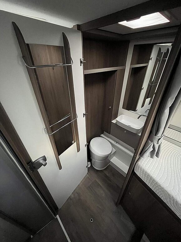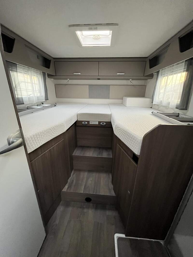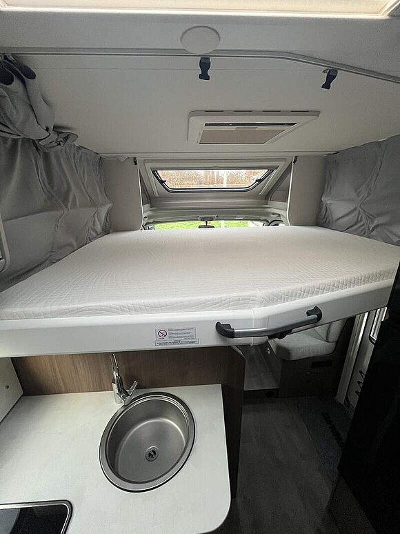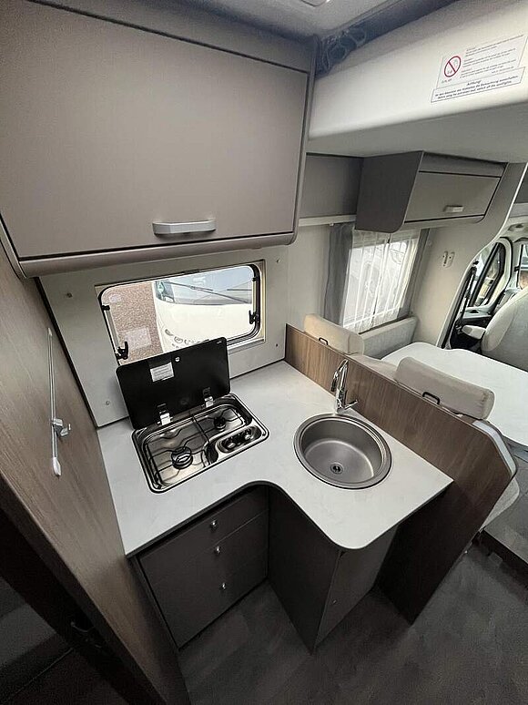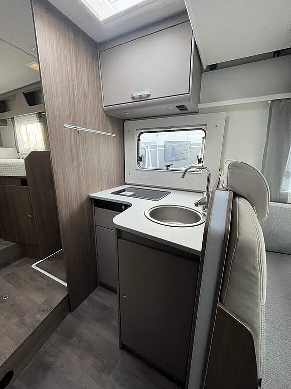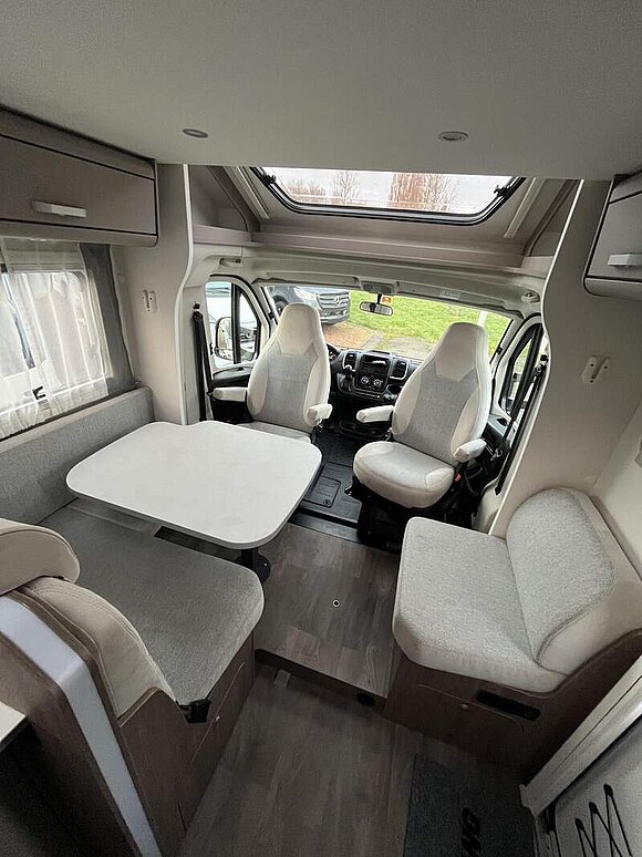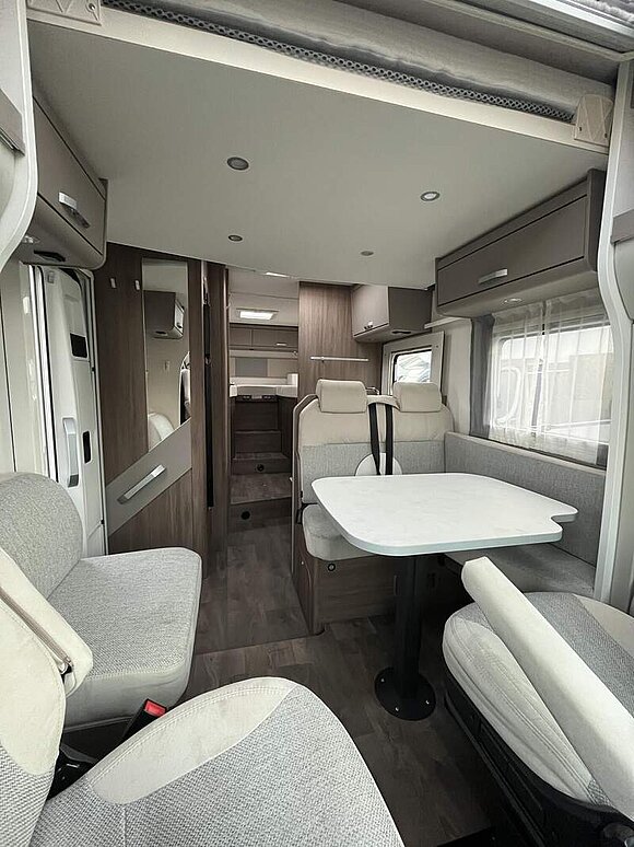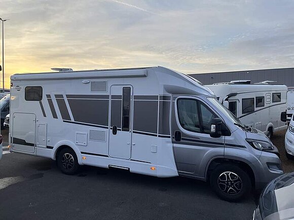 pro+ Paket (Basic Paket, Style Paket, Chassisfarbe Artense Grau Metallic, Stoßfänger lackiert, 16" Alufelgen, Faltverdunkelung Fahrerhaus, Fenster in Fronthaube, Großer Kühlschrank 156 l mit separatem Frosterfach 29 l, Abwassertank isoliert, Markise 4,5 m, TV Paket (22" Flachbildschirm + Halter, Satantenne Flatsat Classic 65), Rahmenfenster, Design Applikation Heck, 2. Außenstauraumklappe (Größe modellabhängig), Beklebung pro+)