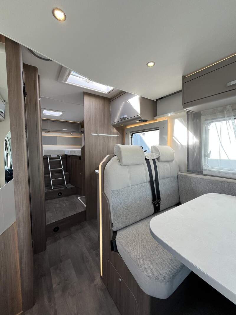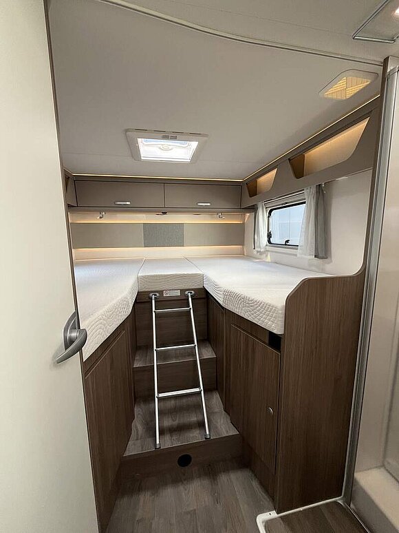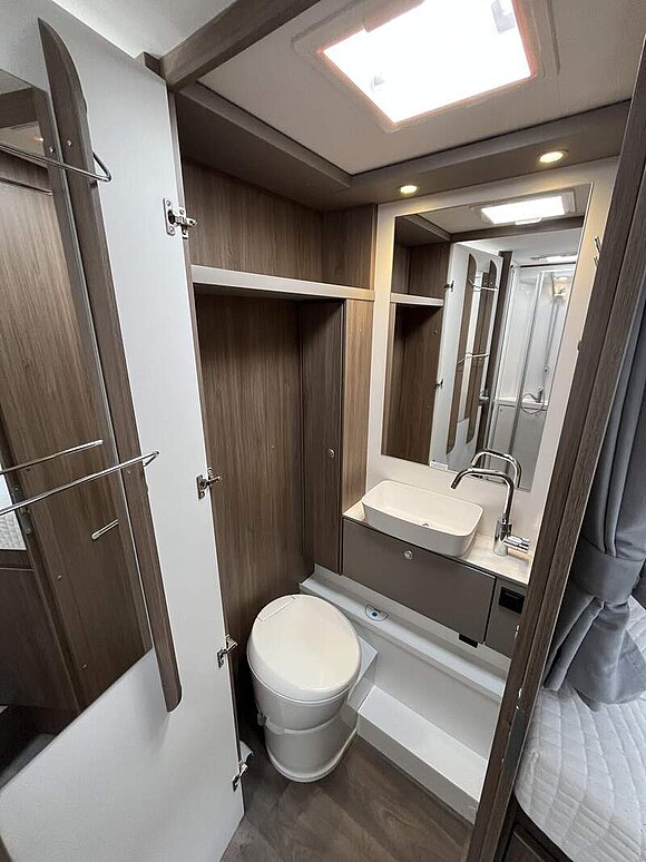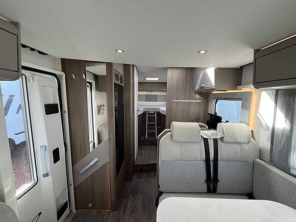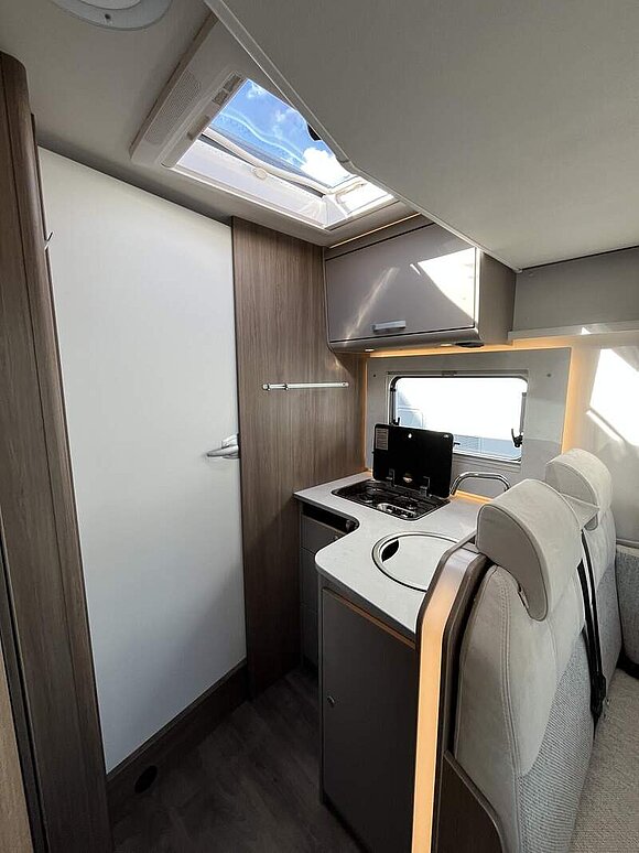 pro+ Paket (Basic Paket, Style Paket, Chassisfarbe Artense Grau Metallic, Stoßfänger lackiert, 16" Alufelgen, Faltverdunkelung Fahrerhaus, Fenster in Fronthaube, Großer Kühlschrank 156 l mit separatem Frosterfach 29 l, Abwassertank isoliert, Markise 4,5 m, TV Paket (22" Flachbildschirm + Halter, Satantenne Flatsat Classic 65), Rahmenfenster, Design Applikation Heck, 2. Außenstauraumklappe (Größe modellabhängig), Beklebung pro+)