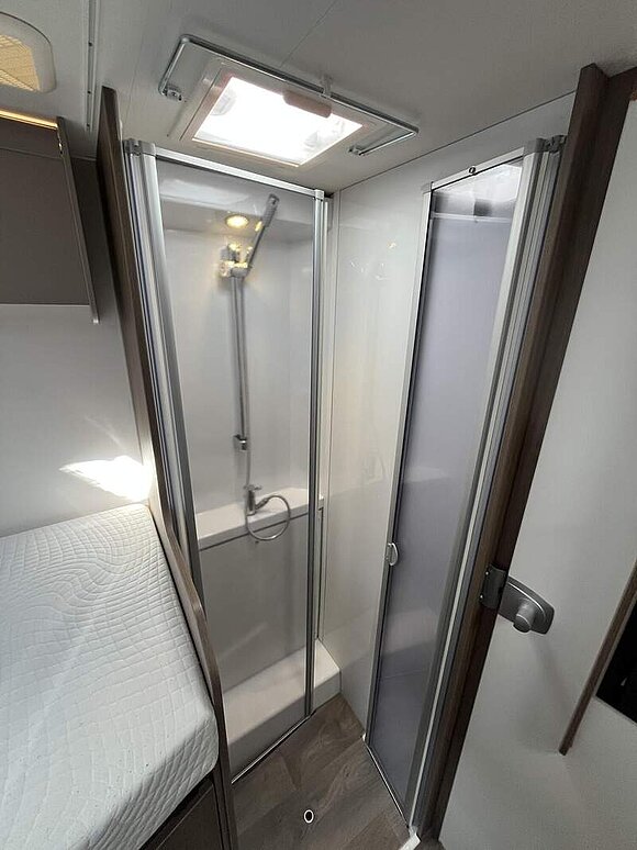 Basic Paket (Panoramadachhaube 70 x 50 cm, Klarglasdachhaube 40 x 40 cm, Fliegengittertür (einteilig), Kabelvorbereitung für Rückfahrkamera, Komfort-Eingangstür mit Fenster und Verdunkelung, Bridge Light)