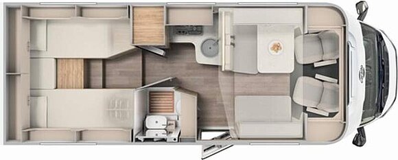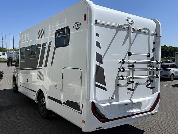 pro+ Paket T447 & T448 & T457 (Optik Paket 1 | Stoßfänger lackiert, Optik Paket 2 | Alufelgen, Chassisfarbe Artense Grau Metallic, Basic Paket, Faltverdunkelung Fahrerhaus, Fenster in Fronthaube, Großer Kühlschrank 156 l mit separatem Frosterfach 29 l, Abwassertank isoliert, Markise 4,5 m, Rahmenfenster, Design Applikation Heck, Zweite Außenstauraumklappe (Größe modellabhängig), Beklebung pro+)