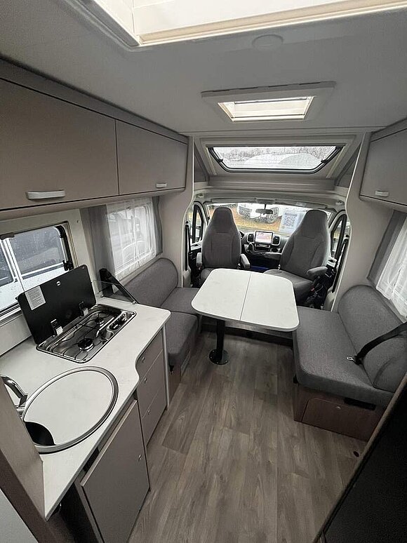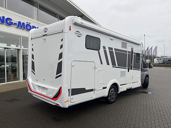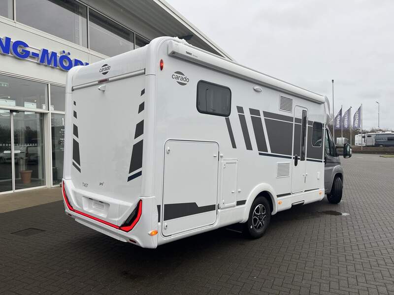 pro+ Paket T447 & T448 & T457 (Optik Paket 1 | Stoßfänger lackiert, Optik Paket 2 | Alufelgen, 16" Alufelgen Bi-Color, Chassisfarbe Artense Grau Metallic, Basic Paket, Faltverdunkelung Fahrerhaus, Fenster in Fronthaube, Großer Kühlschrank 156 l mit separatem Frosterfach 29 l, Abwassertank isoliert, Markise 4,5 m, Rahmenfenster, Design Applikation Heck, Zweite Außenstauraumklappe (Größe modellabhängig), Beklebung pro+)
