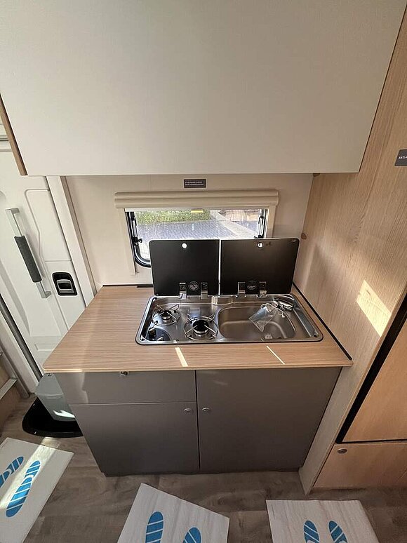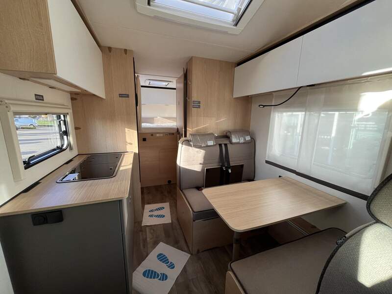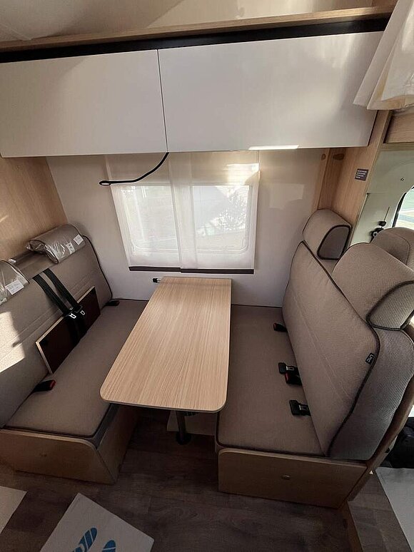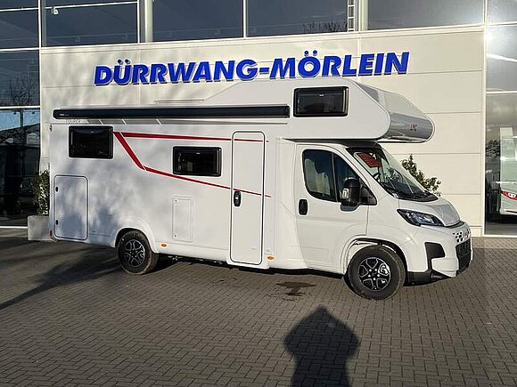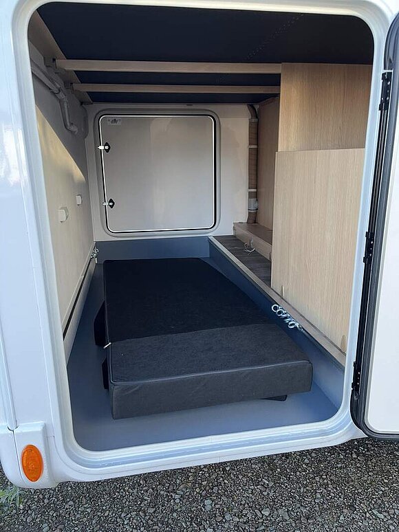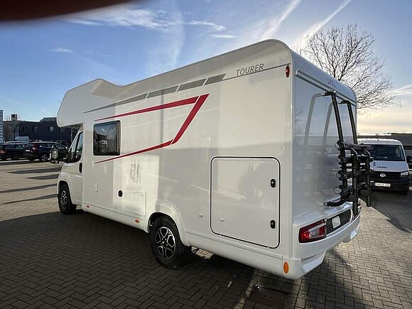 Tourer A Basis Paket (Dachhaube Klarglas 700x500mm inkl. Verdunklungsrollo und Insektenschutz über der Sitzgruppe, Markise matt Schwarz 4,5 x 2,50m inkl. LED-Streifen, Fahrradhalterung für vier Räder, Insektenschutztür, Isofix für 2 Plätze, Alkovenfenster Beifahrerseite inkl. Verdunklungsrollo und Insektenschutz, Abwassertank isoliert und automatisch beheizt, Heckgaragentür Fahrerseite)