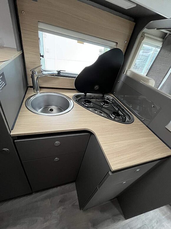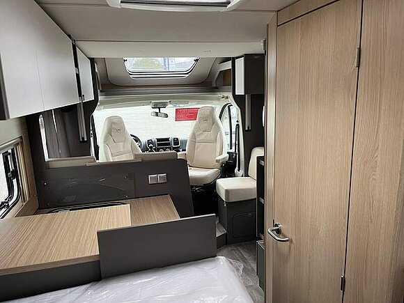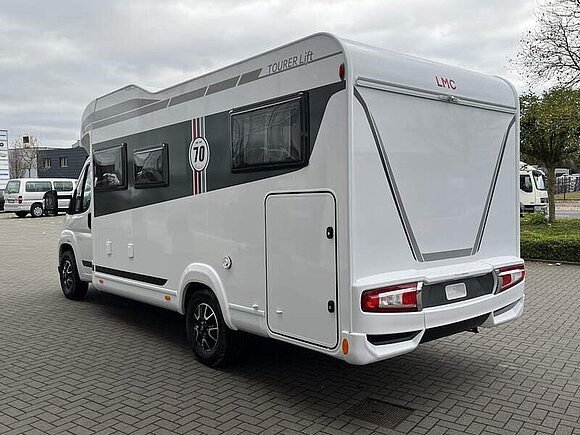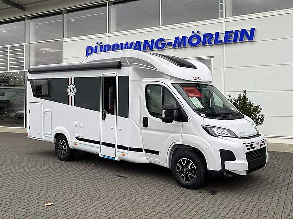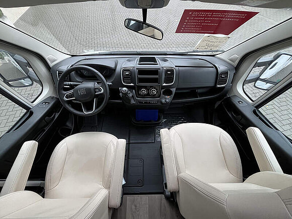 Tourer 70 Jahre Paket (Polster Dacit 70 Jahres Edition, Insektenschutztür, Skid Plate schwarz glänzend, Nebelscheinwerfer, Armaturentafel mit Applikationen (Techno Trim), Lenkrad und Schaltknauf in Lederausführung, 16" Aluminiumfelgen schwarz mit Allwetterreifen, Stoßfänger in Wagenfarbe, Abwassertank isoliert und automatisch beheizt, Panoramafenster inkl. Verdunklungsrollo und Insektenschutz über Fahrerhaus)