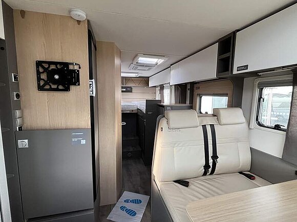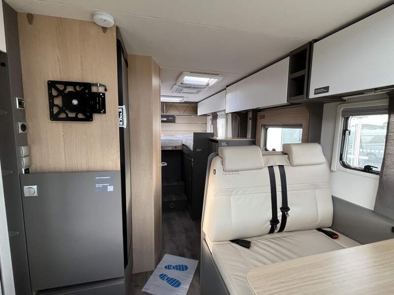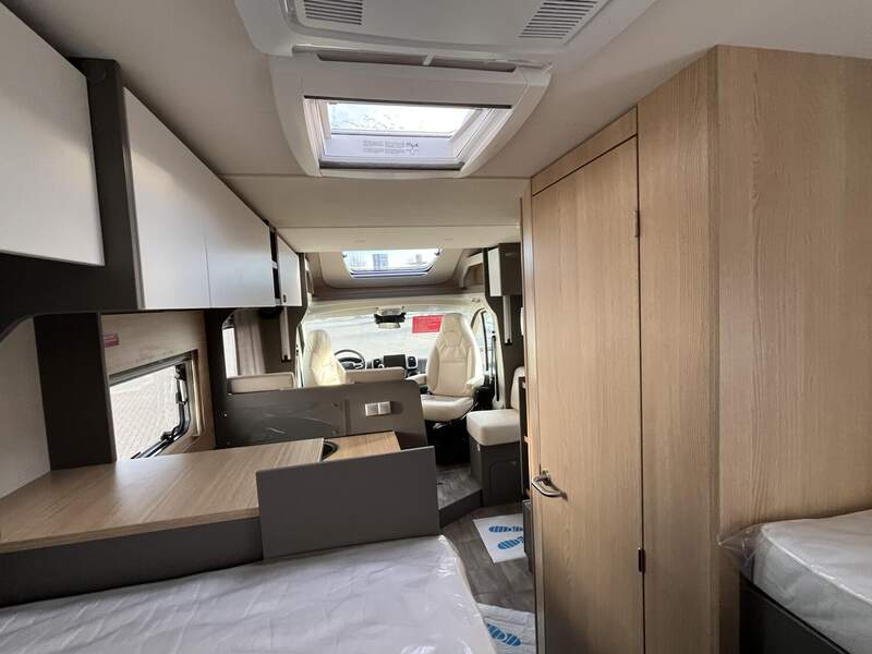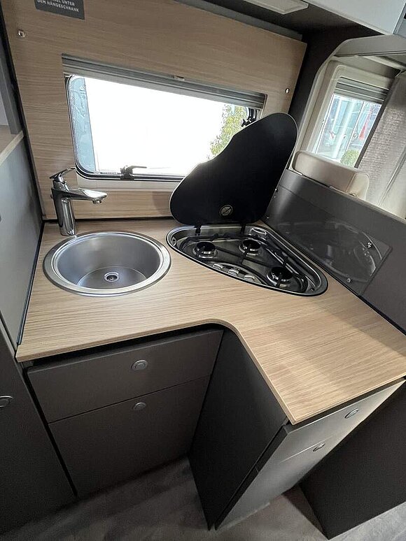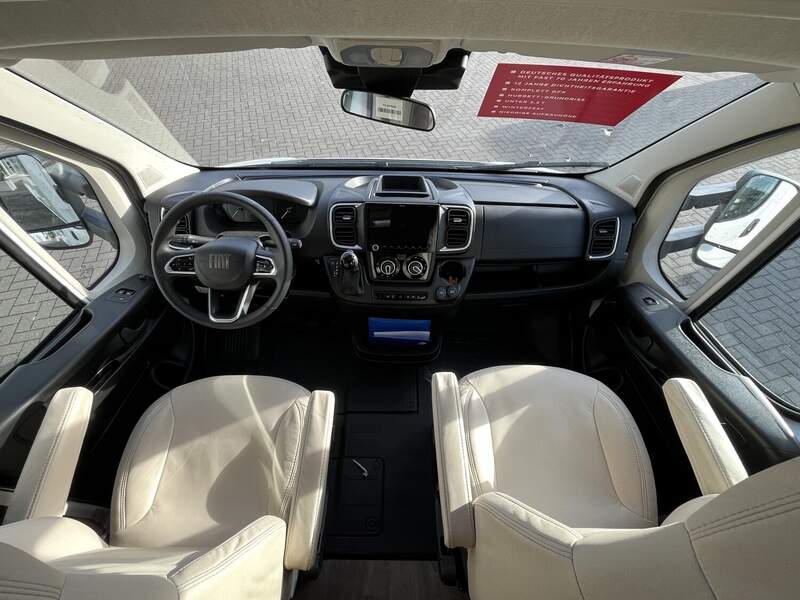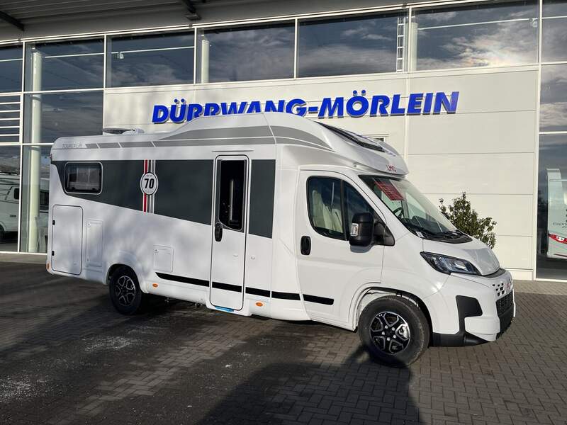 Tourer 70 Jahre Paket (Polster Dacit 70 Jahres Edition, Insektenschutztür, Skid Plate schwarz glänzend, Nebelscheinwerfer, Armaturentafel mit Applikationen (Techno Trim), Lenkrad und Schaltknauf in Lederausführung, 16" Aluminiumfelgen schwarz mit Allwetterreifen, Stoßfänger in Wagenfarbe, Abwassertank isoliert und automatisch beheizt, Panoramafenster inkl. Verdunklungsrollo und Insektenschutz über Fahrerhaus)