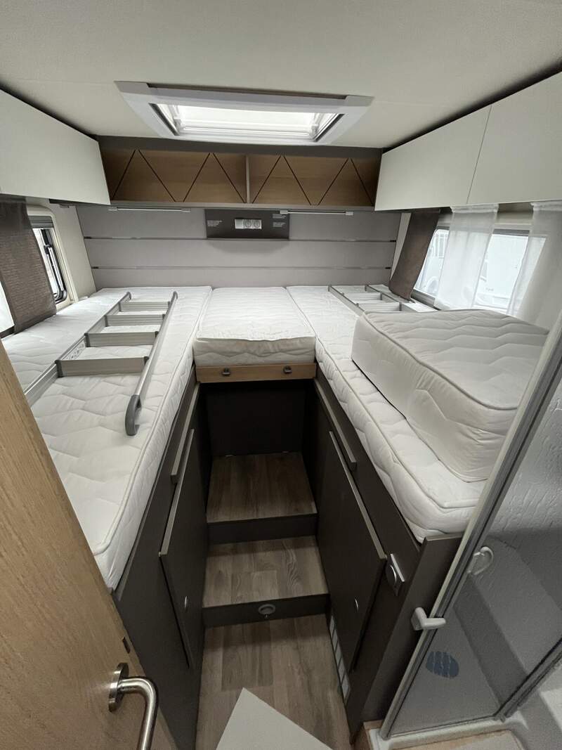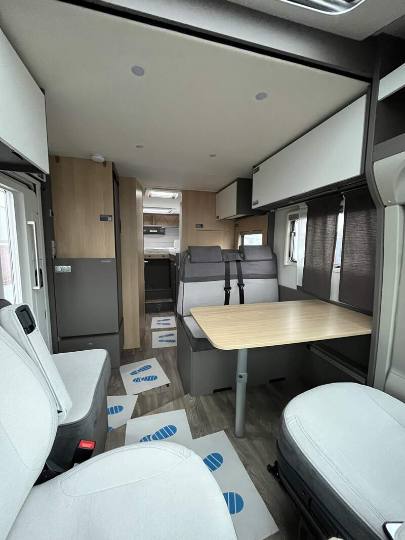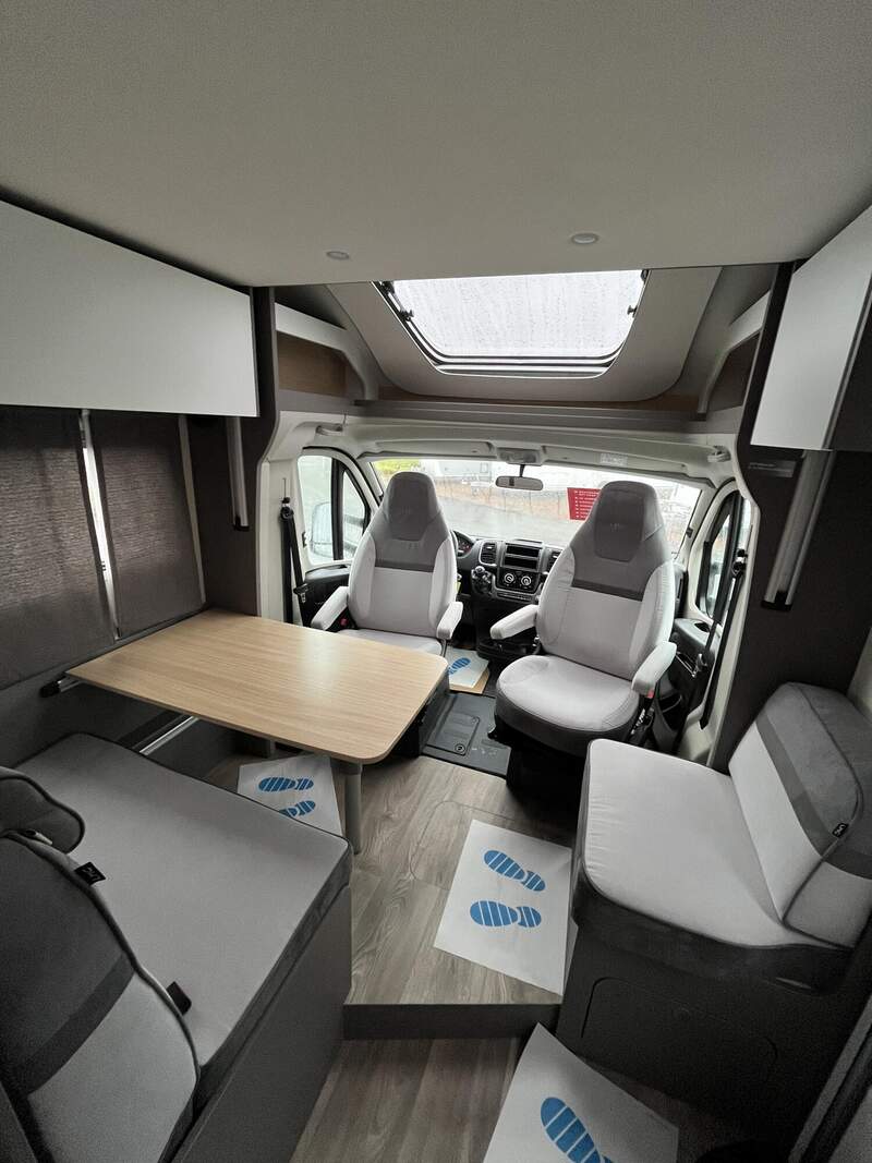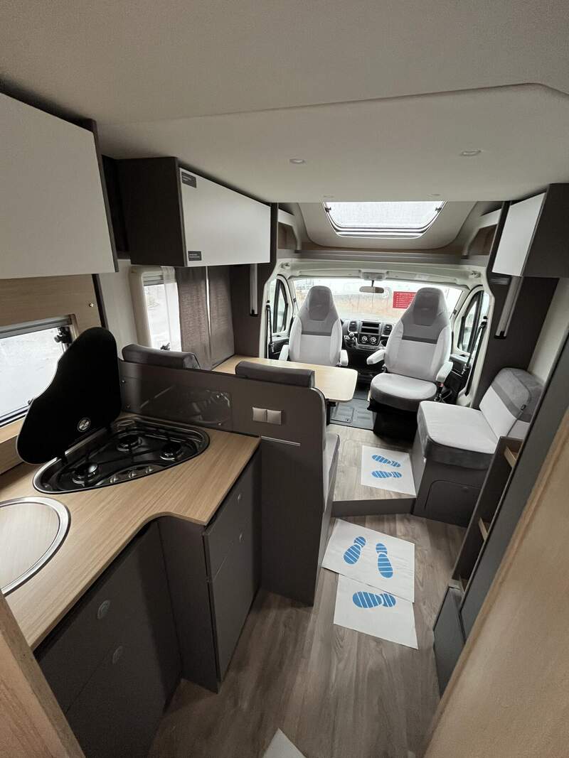 Tourer Paket (Insektenschutztür, Vorbereitung SAT, Klimaanlage, inkl. Dachverstärkung, Vorbereitung Solar, Dachhaube Klarglas 700 x 500 mm inkl. Verdunklungsrollo und Insektenschutz über Sitzgruppe (bei Lift-Modellen über Heckbett), Panoramafenster inkl. Verdunklungsrollo und Insektenschutz über Fahrerhaus, Fahrerhausverdunklung (Plissees), TV-Platz Vorbereitung (2x 12 V, 1x 230 V Steckdose 1x Cinch AV), Beleuchtungsspots im Bodenbereich, Indirekte Beleuchtung Küchenrückwand, Indirekte Beleuchtung oberhalb und unterhalb der Hängeschränke, LED-Leisten im Schlafbereich)