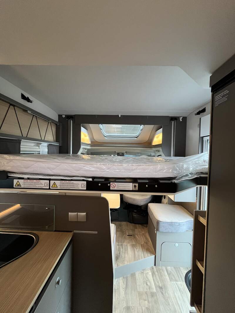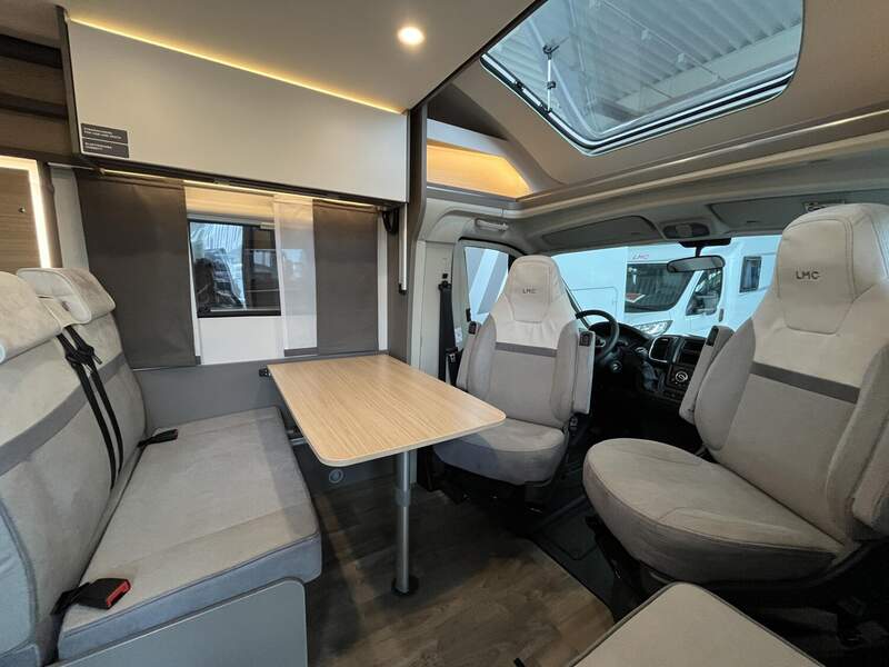 Tourer Paket (Insektenschutztür, Vorbereitung SAT, Klimaanlage, inkl. Dachverstärkung, Vorbereitung Solar, Dachhaube Klarglas 700 x 500 mm inkl. Verdunklungsrollo und Insektenschutz über Sitzgruppe (bei Lift-Modellen über Heckbett), Panoramafenster inkl. Verdunklungsrollo und Insektenschutz über Fahrerhaus, Fahrerhausverdunklung (Plissees), TV-Platz Vorbereitung (2x 12 V, 1x 230 V Steckdose 1x Cinch AV), Beleuchtungsspots im Bodenbereich, Indirekte Beleuchtung Küchenrückwand, Indirekte Beleuchtung oberhalb und unterhalb der Hängeschränke, LED-Leisten im Schlafbereich)