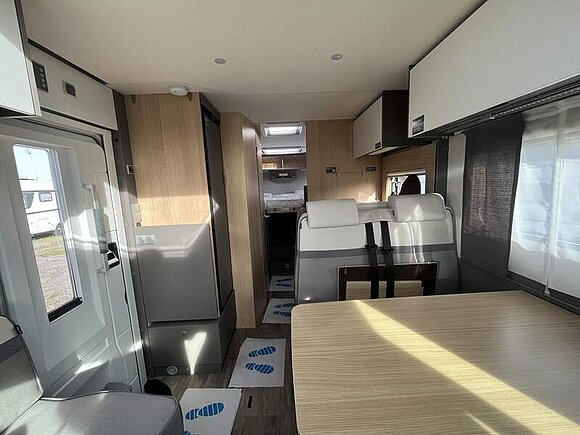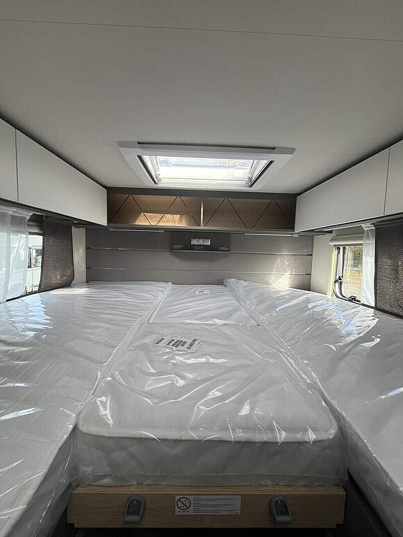 Tourer Paket (Insektenschutztür, Vorbereitung SAT, Klimaanlage, inkl. Dachverstärkung, Vorbereitung Solar, Dachhaube Klarglas 700 x 500 mm inkl. Verdunklungsrollo und Insektenschutz über Sitzgruppe (bei Lift-Modellen über Heckbett), Panoramafenster inkl. Verdunklungsrollo und Insektenschutz über Fahrerhaus, Fahrerhausverdunklung (Plissees), TV-Platz Vorbereitung (2x 12 V, 1x 230 V Steckdose 1x Cinch AV), Beleuchtungsspots im Bodenbereich, Indirekte Beleuchtung Küchenrückwand, Indirekte Beleuchtung oberhalb und unterhalb der Hängeschränke, LED-Leisten im Schlafbereich)