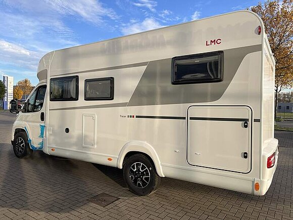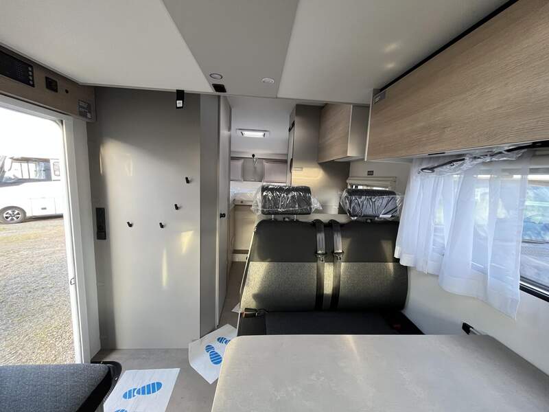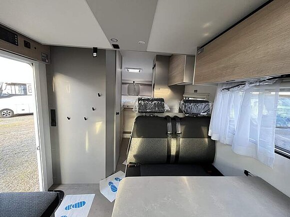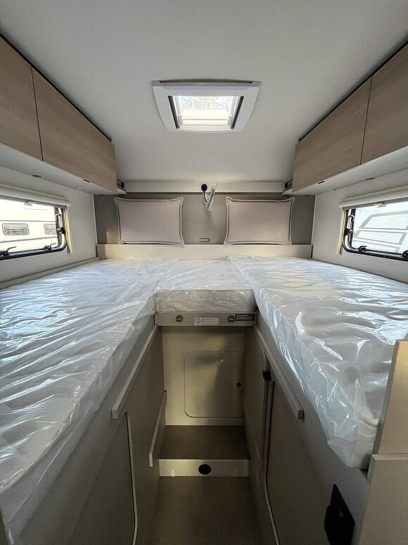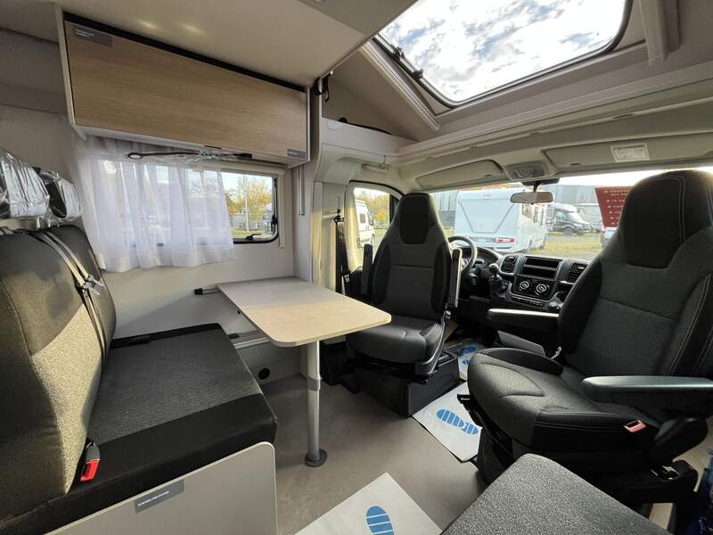 Tracer Paket (Insektenschutztür, Panoramafenster inkl. Verdunklungsrollo und Insektenschutz über Fahrerhaus, Isofix für 2 Plätze, Markise matt Schwarz inkl. LED-Streifen, Fahrerhausverdunklung (Plissees), Pinnwand mit Spanngummis, 2 Relax Kissen 600x400 für das Bett)