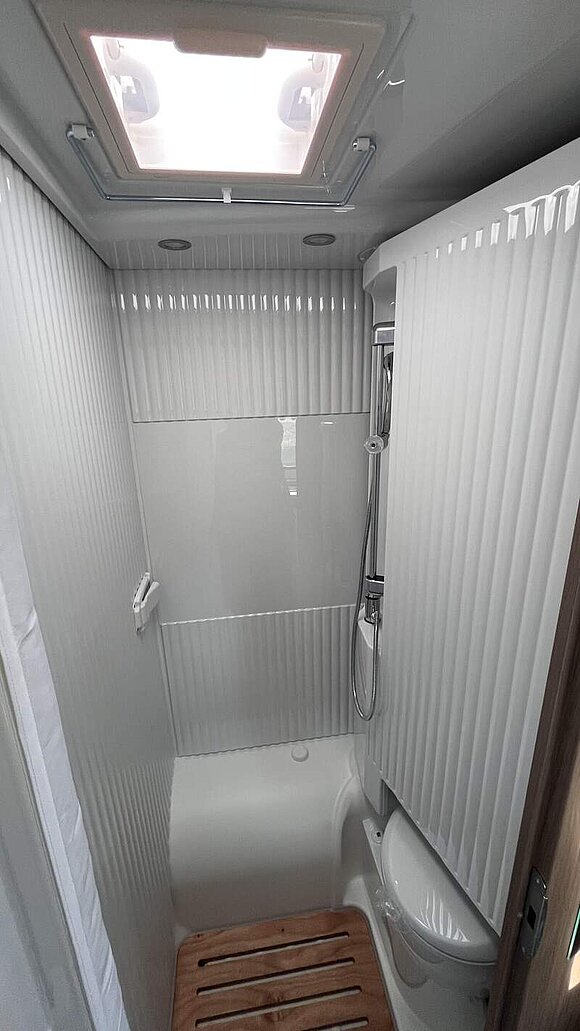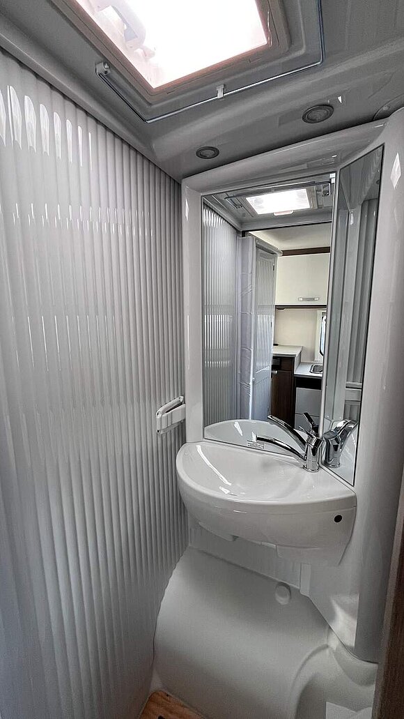 pro+ Paket V339 (Optik Paket 1 | Stoßfänger lackiert, Optik Paket 2 | Alufelgen, 16" Alufelgen Bi-Color, Basic Paket, Chassisfarbe Artense Grau Metallic, Faltverdunkelung Fahrerhaus, Fenster in Fronthaube, Sonderfarbe Dachstauschrankklappen und Türen in Cosy White, Beklebung pro+, Markise 4 m, Abwassertank isoliert)