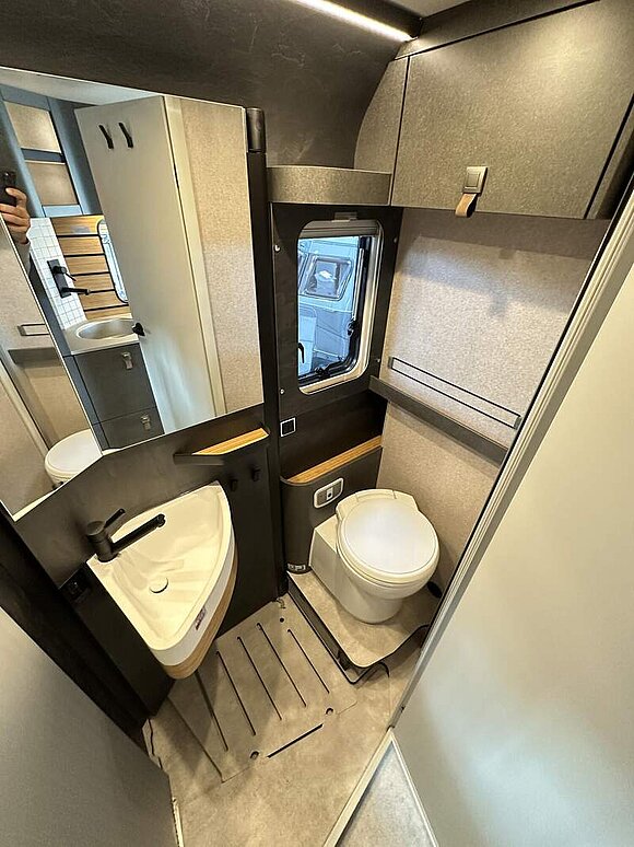 Toilettenentlüftung (geräuscharmer, stetiger Luftaustausch beim Spülen, kein Einsatz von zusätzlichen Toilettenchemikalien notwendig)