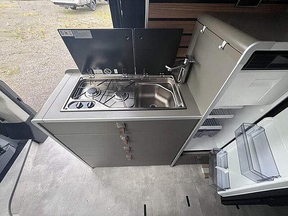 Autarkie-Paket LFP (für das Aufstelldach) (HYMER-Smart-Battery-System 2.0: Batteriemodul Aufbau 80 Ah LFP inkl. Zusatzlader 18 A anstelle 95 Ah AGM, HYMER-Smart-Battery-System 2.0 - Erweiterung Batteriemodul Aufbau mit 2x 80 Ah LFP, Solaranlage 2 x 85 Watt mit Solarladeregler (MPPT) und Anzeige (für das Aufstelldach), Wechselrichter 12V auf 230V, 1600VA, 2.800W Spitzenleistung inkl. 70 A Zusatzlader, Wasserfilter für Frischwassersystem)