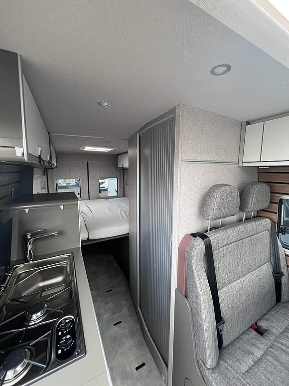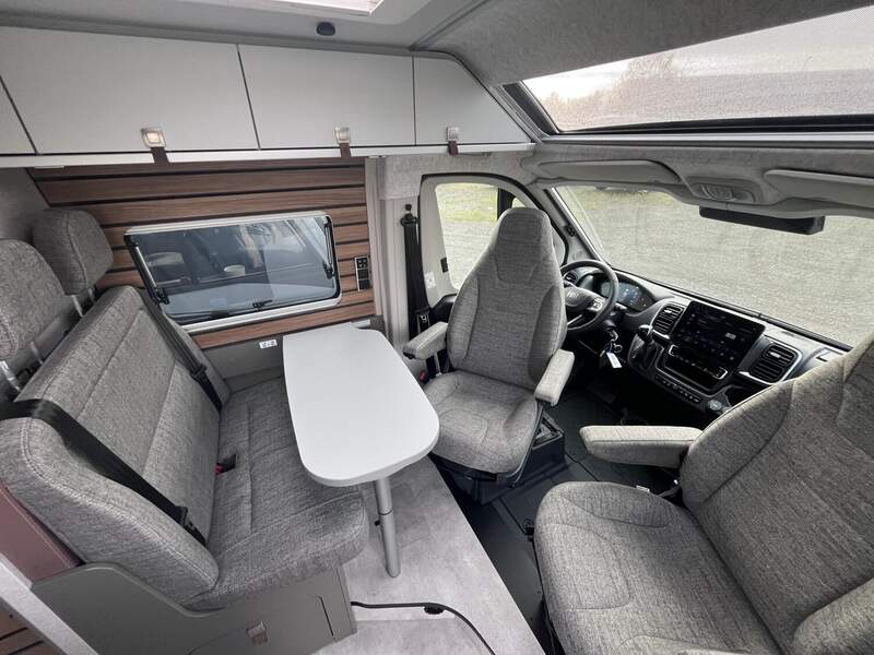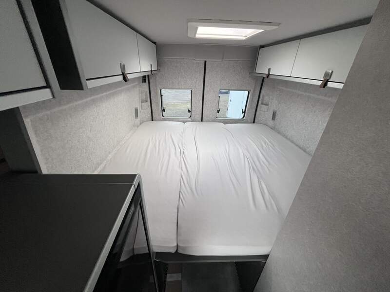 Wohnkomfort Paket (Skyview Fenster Fahrerhaus inkl. Verdunklung, Ambient-Light-System: Mehr-Ebenen Lichtsystem mit dynamischer und individueller Steuerung der Beleuchtung (inkl. Lichttemperatur) sowie stimmungsvoller Sockelbeleuchtung, Wohnwelt "HOME" (2 Kissen und Stofftasche), Spannbettlaken nach Maß für Heckbetten individuell an Matratzen angepasst, Einlegeboden mit Korkoberfläche)