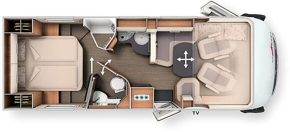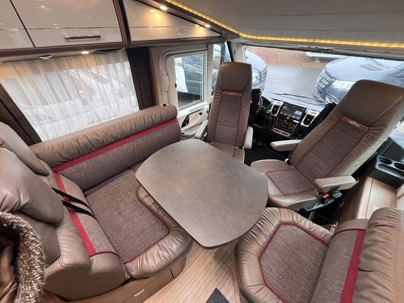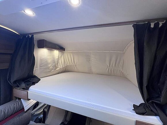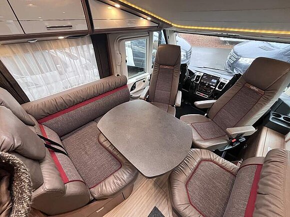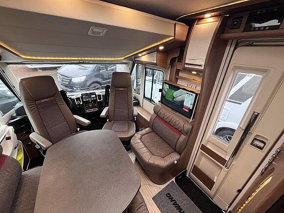 Chassis-Paket (Klimaautomatik Fahrerhaus, Tempomat Cruise Control, elektrisch verstellbar, Sitzflächen Höhen- und Neigungsverstellung (vorn/hinten) Fahrerhaussitze, Armaturenbrettveredelung mit Edelholzapplikationen und Lüftungsgitter in silber, Radzierblenden mit Carthago Emblem, Radiovorbereitung mit Dachantenne mit DAB+, Lautsprecher im Fahrerhaus (2x) und Wohnsitzgruppe (2x), DVB-T2 Empfang)
