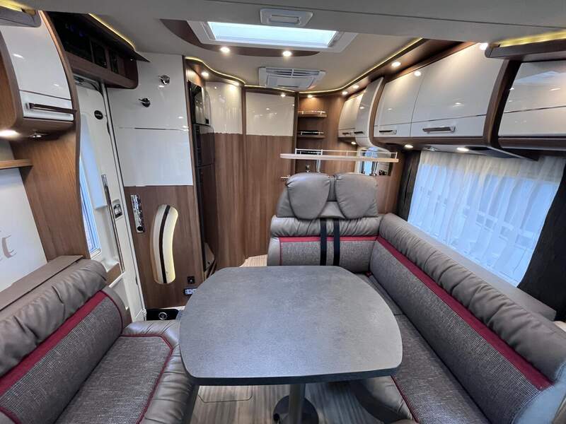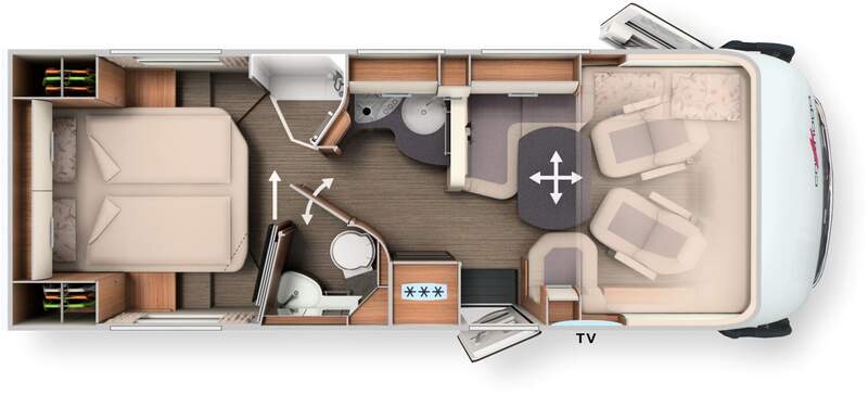 Komfort-Paket (Dachkuppel Midi-Heki (700x500mm) mit Deckenbaldachin über Wohnsitzgruppe, Insektenschutzrollo Aufbautür, SOG-Toilettenentlüftung, Entlüftung über Dachkamin, Abwasserschlauchset zur komfortablen Entsorgung, USB-Steckdose im Dachstauschrank über Heckbett, Vorbereitung elektr. Dachlüfter, Vorbereitung Solaranlage, Vorbereitung Sat-Anlage, Vorbereitung Rückfahrkamera (Einzellinse), Fernsehvorbereitung: TV-Auszugssystem in Rückenlehne Seitensitzbank, im Dachstauschrank über Sitzgruppe (I 141 LE, 143 LE) oder Wandhalter im Eingangsbereich (I 144 QB/LE) inkl. Anschluss-Set)