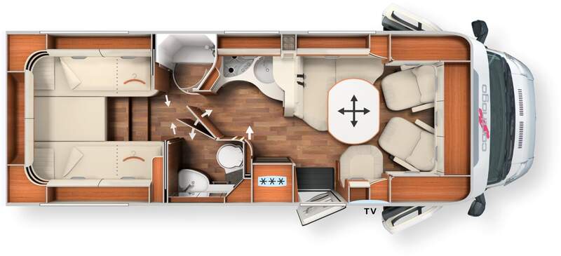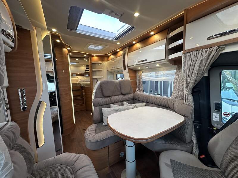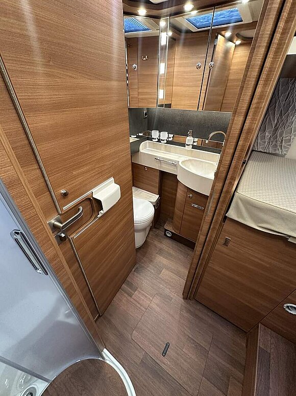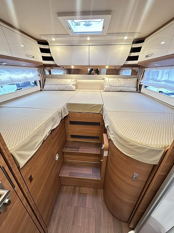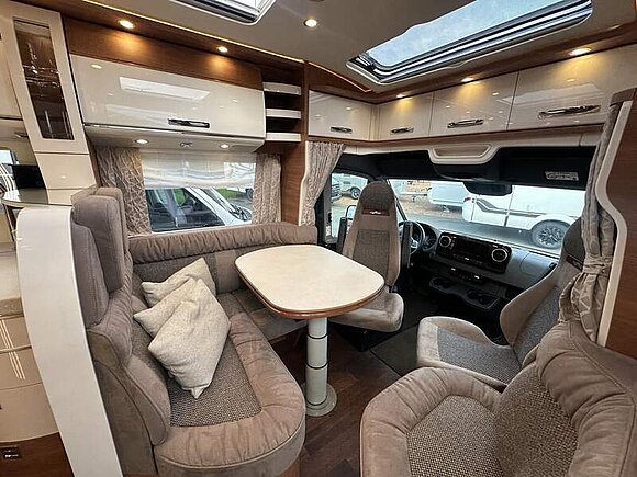 Super-Paket (Vollautomatische Klimaanlage THERMOTRONIC, Tempomat, Ladebooster, Kraftstofftank 92 Liter, Vorderachse mit erhöhter Traglast, Lederlenkrad mit Option Multifunktionstasten, Kombiinstrument mit Farbdisplay, Regensensor, Elektrische Feststellbremse, Wärmedämmendes Glas mit Bandfilter an der Frontscheibe, Fahrerhauskomfortsitze mit Neigungs- und Höhenverstellung (vorn / hinten), Fahrerhausverdunklungssystem, Plissee an Seitenscheiben und Frontscheibe, Kurbel-Heckstützen zur Wankstabilisierung im Stand, XL-Aufbautür "premium two 2.0" (Breite 63 cm) mit Doppelverriegelung, Fenster- und Insektenschutzrollo, Zentralverriegelung Fahrerhaustüren und Aufbautür mit Funktion "coming home", Rollergaragen-Upgrade mit Nadelfilz, Gepäcknetzen, SOG-Toilettenentlüftung über Dachkamin, Truma DuoControl CS, Design-Barschrank mit Gläserhalter und Glas-Set über Küche, USB-Steckdose im Dachstauschrank über Heckbett, Vorbereitung Solaranlage, Vorbereitung Sat-Anlage, Vorbereitung Rückfahrkamera (Einzellinse), Radio / Moniceiver Pioneer 6,8" inkl. DAB+, Radiovorb., Dachantenne, Lausprecher (4x), Rückfahrkamerasystem mit Einzellinse)