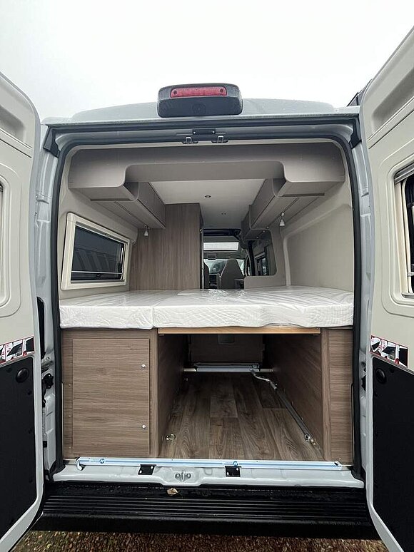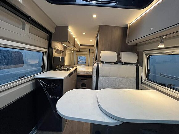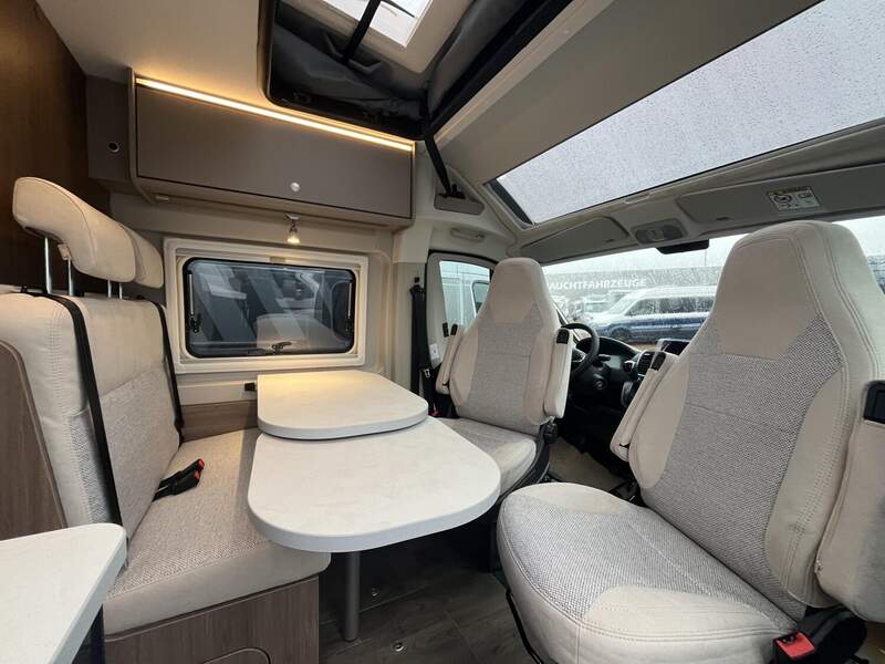 Pro+ Paket Optik Paket 1, Stoßfänger lackiert, Optik Paket 2, Alufelgen Basic Paket, Dieseltank 90 l, Faltverdunkelung Fahrerhaus, Rahmenfenster, Markise 3,75 m (Schwarz), Beklebung pro+, LED-Beleuchtung integriert über den Dachschränken, Panoramafenster über Fahrer- und Beifahrersitz, Heckdachstauschrank umlaufend