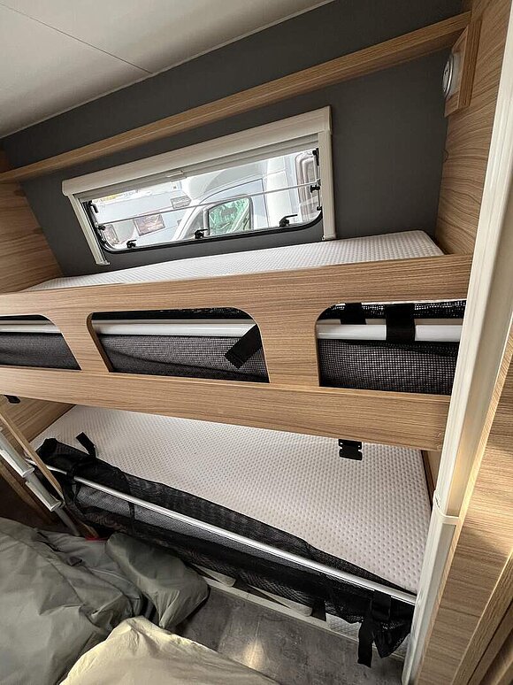 Etagenbetten mit Rausfallschutz und Leiter