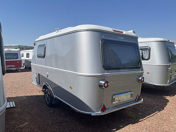 Ausstattungslinie Urban (Außenfarbe White Silver) (Seitenwände, Bug und Heck in Glattblech, Farbe White Silver, Möbeldekor Tindari, Ambientelicht XL mit indirektem Licht oberhalb der Dachstauschränke und zwei zusätzliche ERIBA Multifunktions-Akkuleuchten, 2 Kissen mit Bezug)