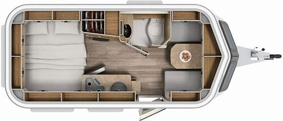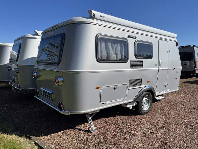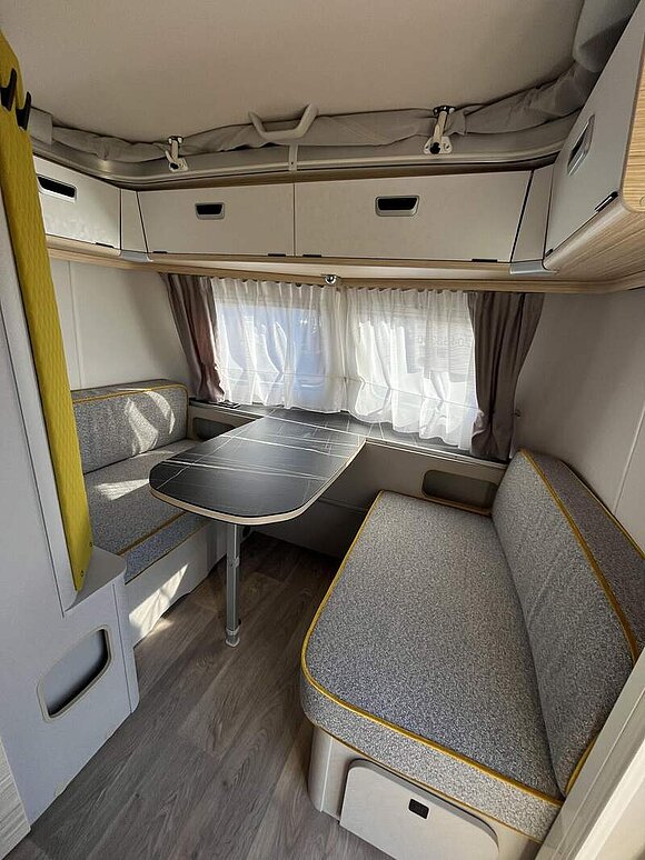 Ausstattungslinie Urban (Außenfarbe Crystal Silver) (Seitenwände, Bug und Heck in Glattblech, Farbe Crystal Silver, Möbeldekor Tindari, Ambientelicht XL mit indirektem Licht oberhalb der Dachstauschränke und zwei zusätzliche ERIBA Multifunktions-Akkuleuchten, 2 Kissen mit Bezug)