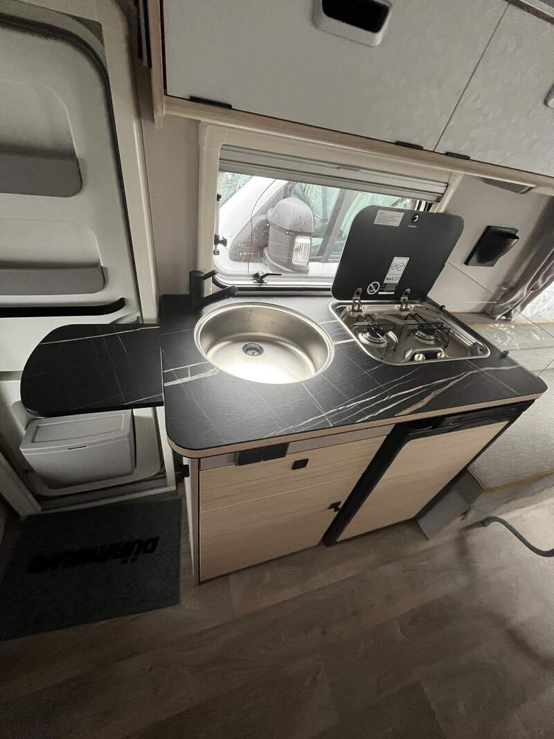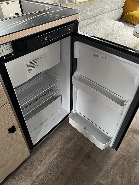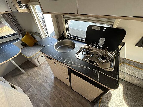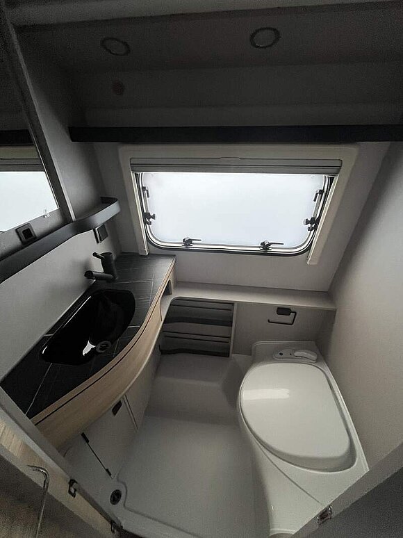 Komfort Paket (Fliegenschutz-Rolltür (gesamte Türhöhe), bedienfreundlich durch seitliche Führung, Komfort-Plissee-Rollos, Steckdosenpaket (2 x 230 V Steckdosen und 1 x USB-Doppelsteckdose), Spülenabdeckung mit Schneidebrett, Abfalleimer in Eingangstür integriert, Zusätzlicher Vergrößerungsspiegel mit Magnethalterung)