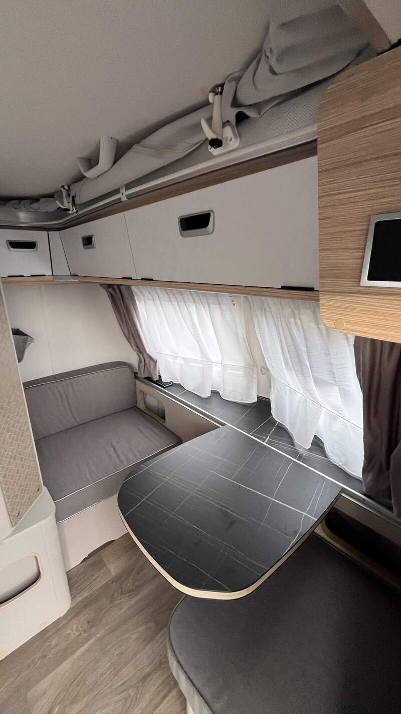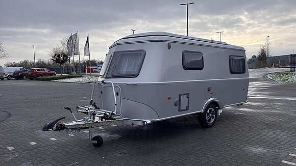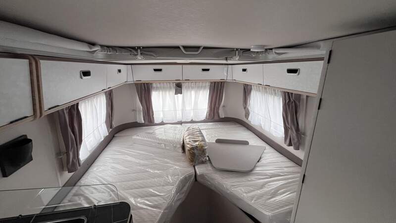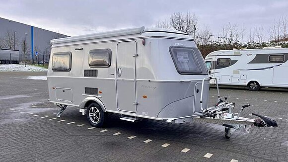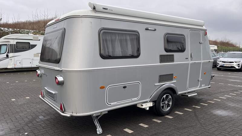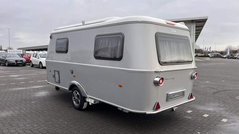 Ausstattungslinie Urban (Außenfarbe Crystal Silver) (Seitenwände, Bug und Heck in Glattblech, Farbe Crystal Silver, Möbeldekor Tindari, Ambientelicht XL mit indirektem Licht oberhalb der Dachstauschränke und zwei zusätzliche ERIBA Multifunktions-Akkuleuchten, 2 Kissen mit Bezug)